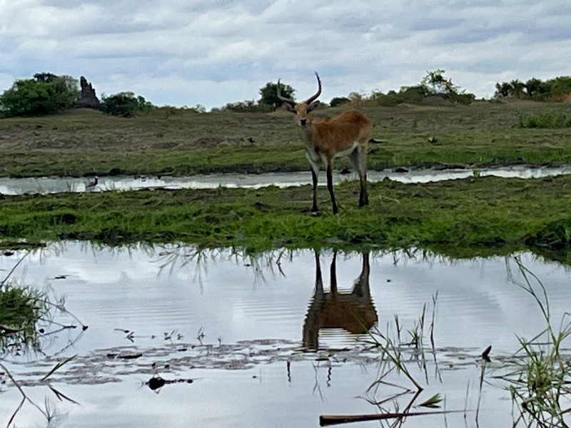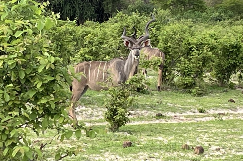 Am Nachmittag geht die Erkundungsfahrt weiter. Elefanten, Impalas, Steenböckchen, Kudus, Leierantilope, Mangusten, Erdhörnchen u.a. kreuzen unsern Weg. An einem grossen Teich sind Flusspferde, Löffler, Sattelstörche, Nimmersatte, Waffenkiebitze u.a. zu beobachten.