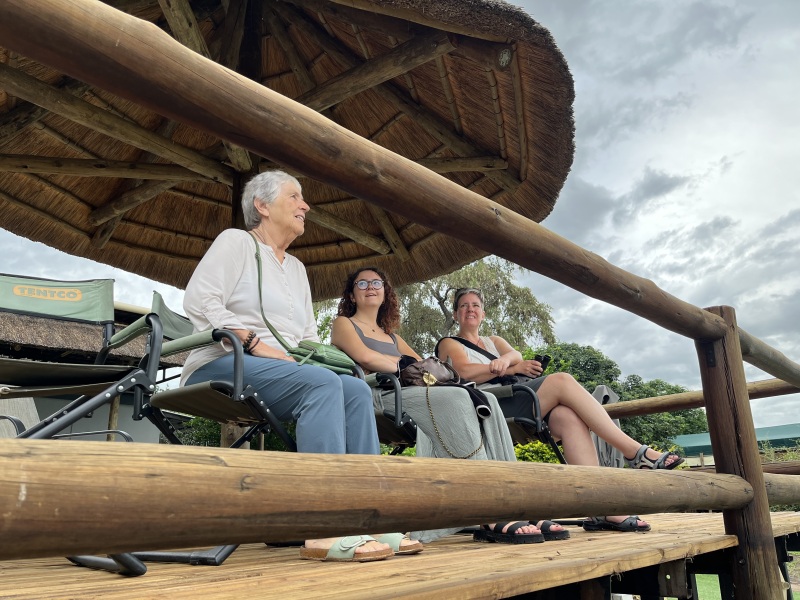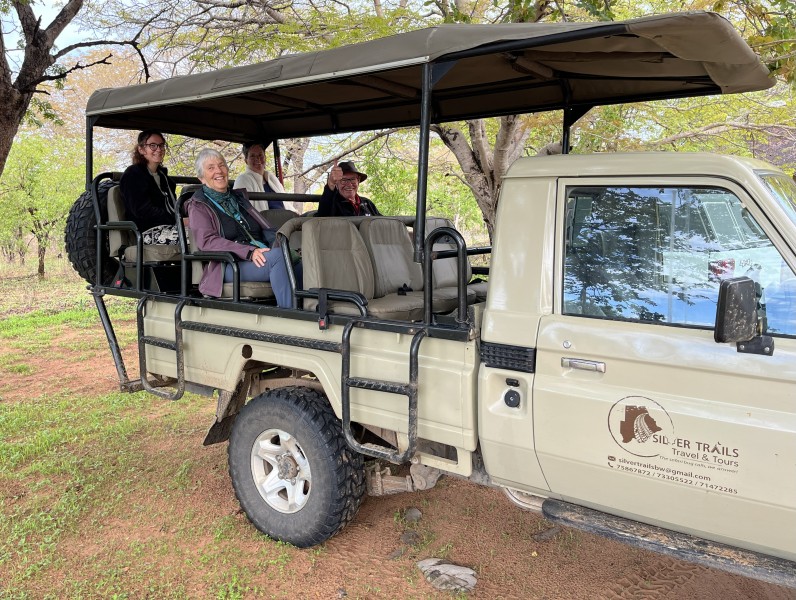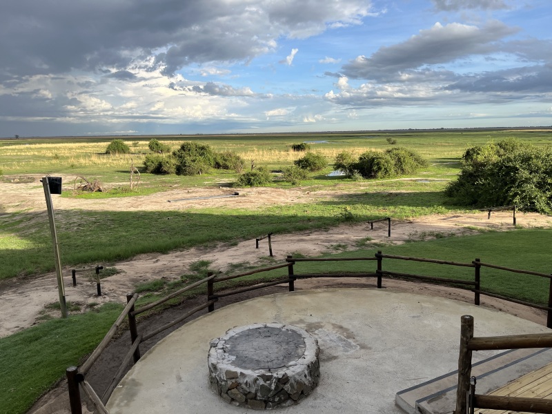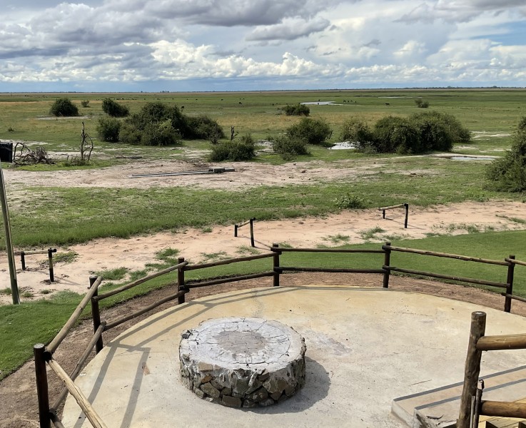 Bis zur Abzweigung zu unserer Lodge, ist die Strasse ebenfalls asphaltiert, aber nun folgt ein Wegstück, das Judiths Fahrkünste fordert. Ausgefahrene Naturstrasse mit teils sandigen Stellen, zwei Holzbrücken und garstige Sträucher beidseitig sind zu bewältigen. Unterwegs an dieser Strasse liegt ein winziges Museum zu Ehren des Missionars und Entdeckers der Victoria-Fälle David Livingstones. Leider ist die Kuratorin gerade abwesend und das Häuschen geschlossen. So fahren wir weiter und erreichen unser Ziel trotz ungenügender Signalisation auf Umwegen. Wir werden mit feuchten Waschlappen empfangen, mit denen wir uns Staub und Schweiss abwischen können. Ein Empfangsdrink und Informationen zur Lodge und zum Exkursionsangebot erfolgen durch die Managerin Maggie. Nun können wir unsere Zelte beziehen. Sie sind sauber, komfortabel und laden mit der zugehörigen Terrasse auf ein Wasserloch und die umgebende Landschaft hinaus zum Verweilen ein. Wir buchen gleich zwei Angebote, eine Abend- und eine Vormittagsexkursion im Safari-Geändefahrzeug.