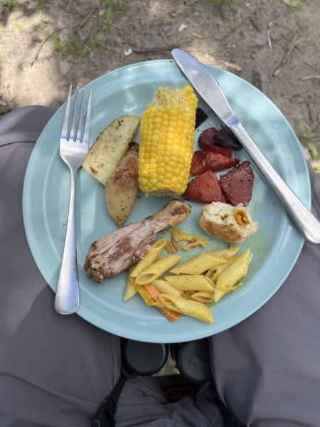 Wir geniessen nun das Dinner aus Salat, Süsskartoffelsuppe, Hauptgang mit Schinken, verschiedenen Gemüsen, Couscous und Dessert. Und wieder ist früh Nachtruhe angesagt.