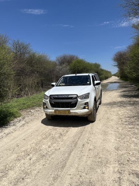 Heute stehen wir früh auf, da wir über die Rezeption bereits auf halb sechs einen Guide mit Geländefahrzeug bestellt haben. Frühstück und Mittagessen werden mitgeliefert und unterwegs eingenommen. Der Guide hat noch einen Begleiter als Gehilfen bei sich. Die Fahrt geht ins Moremi Game Reserve, ein fast 5‘000 km2 grosses Wildreservat, das im Gebiet des Okawangodeltas und durchschnittlich auf 900 m Höhe liegt. Die Fahrt hierhin beträgt rund 100 km und führt über eine löcherige Asphaltstrasse und über eine Naturstrasse mit vielen wassergefüllten Mulden und Sandabschnitten. Unser Gefährt rattert und schüttelt uns ganz schön durch. An Schlaf ist dabei nicht zu denken.